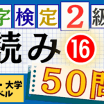 今回の記事は、漢検2級「漢字の読み」の問題パート⑰(全50問)です。